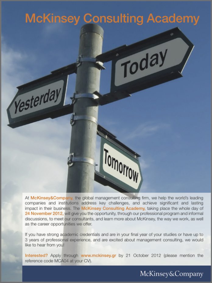 Interested? Apply through www.mckinsey.gr by 21 October 2012