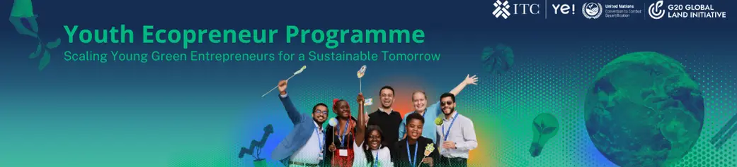 Welcome to the Youth Ecopreneur Programme, implemented by ITC’s Ye! Community and the G20 Global Land Initiative/UNCCD, where passionate young innovators drive the future of green business! What started as just an awards program has now grown into the Youth Ecopreneur Programme and in 2024, we received 850 applications from over 100 countries, showcasing incredible talent in Land Restoration and Green Business Solutions.